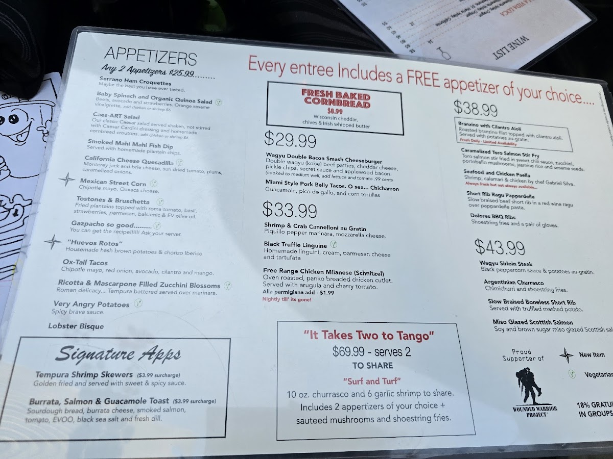 You’ll find familiar favorites reimagined with distinctive touches—like freshly baked skillet cornbread served warm with Irish whipped butter, or the rich Spanish cheesecake that adds a sweet finish to the meal. From vibrant frozen sangrias and well-crafted cocktails like the Passion Mule and Aperol Spritz to hearty dinner options such as seafood paella and Mexican ox-tail tacos, the offerings feel approachable yet thoughtfully curated.