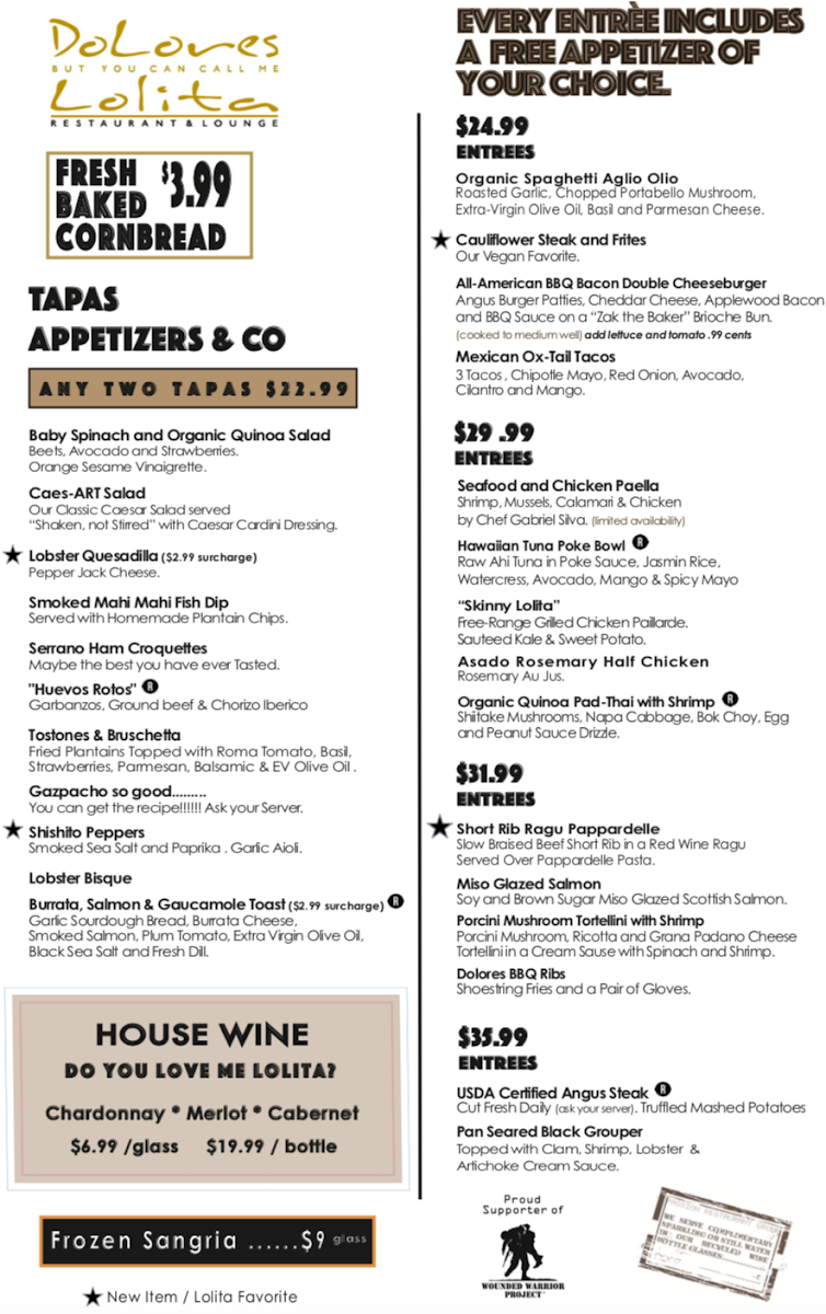 Dolores But You Can Call Me Lolita Menu